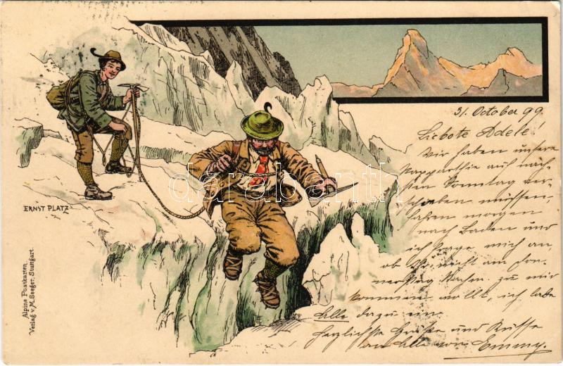 1899 (Vorläufer) Hegymászók télen / Winter sport, mountain climbing. Alpine Postkarten . M. Seeger s: Ernst Platz (EK)