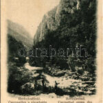 1899 (Vorläufer) Herkulesfürdő, Baile Herculane; Cserna-völgy a vízzuhatag felé. Alfred Jäger kiadása / Csernatal gegen den Wasserfall gesehen / valley, waterfall (EB)