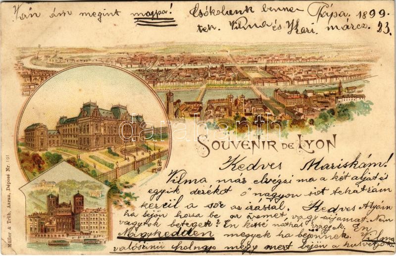 1899 (Vorläufer) Lyon. Müller & Trüb Nr. 191. Art Nouveau, litho (EK)<a href="https://www.darabanth.com/hu/gyorsarveres/417/kategoriak~Kepeslapok/Franciaorszag~1500057/1899-Vorlaufer-Lyon-Muller-Trub-Nr-191-Art-Nouveau-litho-EK~II2630406/?utm_source