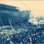1899 (Vorläufer) SMS Erzherzog Franz Ferdinand Osztrák-Magyar Haditengerészet Radetzky-osztályú csatahajó vízrebocsájtása / K.u.K. Kriegsmarine Stapellauf eines Pre-Dreadnought-Schlachtschiffs / Launching of SMS Erzherzog Franz Ferdinand,