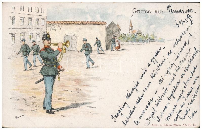 1899 (Vorläufer) Temesvár, Timisoara (?); kaszárnya katonákkal / Gruss aus… military barracks with soldiers. Alex J. Klein. litho (EK)