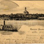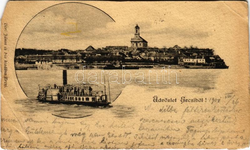 1900 Ercsi, látkép, gőzhajó. Déri János és Fia kiadása (vágott / cut)
