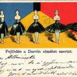 1900 Fejlődés a Darwin elmélet szerint / Darwin’s evolution theory, humour, bottle of champagne – ballet dancer (kopott sarkak / worn corners)