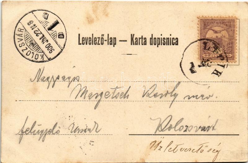1900 Lipik, Marmorbäder, Curhotels, Trinkquelle / Márványfürdők, szállodák, gyógyforrás. Kiadja Wlaszlovits Gusztáv 1126. / marble baths, hotels, spa, bathing house. Art Nouveau, floral (fl)<a href="https://www.darabanth.com/hu/gyorsarveres/415/kate
