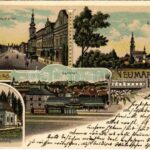 1900 Neumarkt im Hausruckkreis, Neumarkt-Kallham; Neumarkt, Kallham, Kalvarienberg, Bahnhof / street view, railway station, calvary hill. Kunstanstalt Kautz & Isenbeck. Art Nouveau, floral, litho (cut)