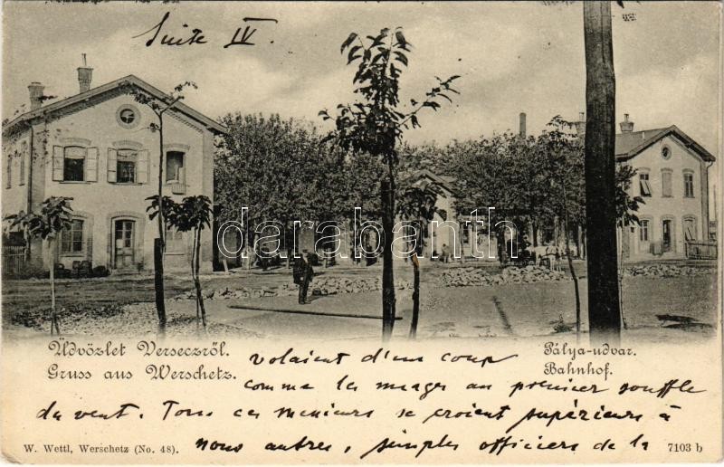 1900 Versec, Werschetz, Vrsac; Pályaudvar, vasútállomás, útépítés. W. Wettl / railway station, road construction