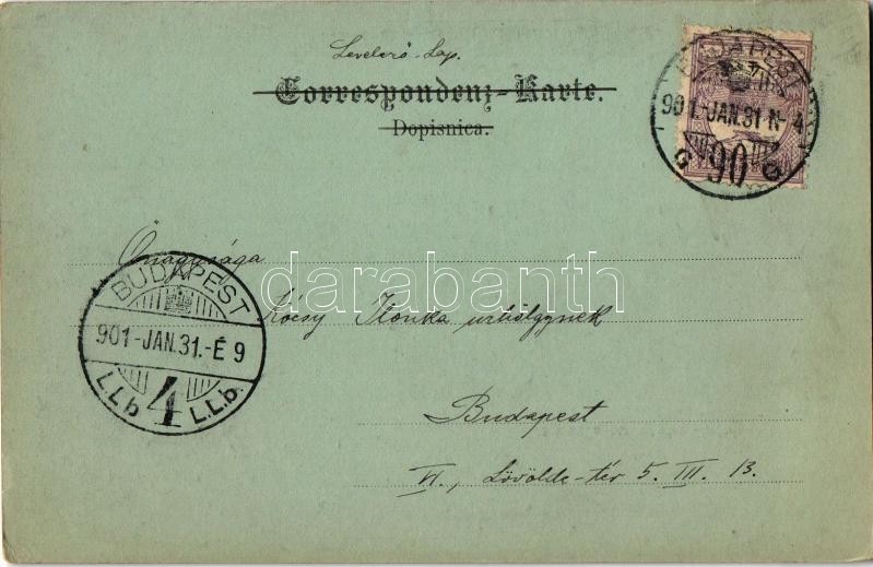1901 Abbazia, Opatija; Hafen und Landungsplatz / harbor, port at night (EK)<a href="https://www.darabanth.com/hu/gyorsarveres/414/kategoriak~Kepeslapok/Horvatorszag~1500007/1901-Abbazia-Opatija-Hafen-und-Landungsplatz-harbor-port-at-night-EK~II19946
