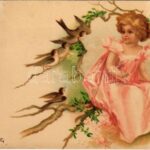 1901 Children art postcard, girl. litho