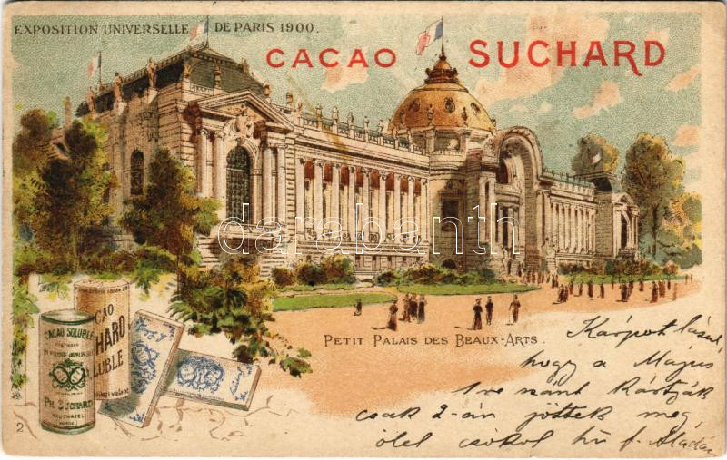 1901 Exposition Universelle de Paris 1900, Petit Palais des Beaux Art. Cacao Suchard / Svájci Suchard csokoládé reklám, Szecessziós litho / Swiss cocoa and chocolate advertisement. Art Nouveau, floral, litho (EK)<a href="https://www.darabanth.com/hu