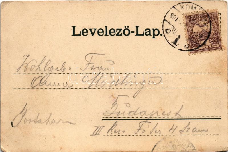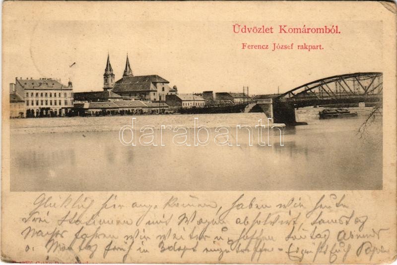 1901 Komárom, Komárno; Ferenc József rakpart, híd. Czike Dénes kiadása / quay, bridge (EK)<a href="https://www.darabanth.com/hu/gyorsarveres/417/kategoriak~Kepeslapok/Felvidek~1500006/1901-Komarom-Komarno-Ferenc-Jozsef-rakpart-hid-Czike-Denes-kiadas