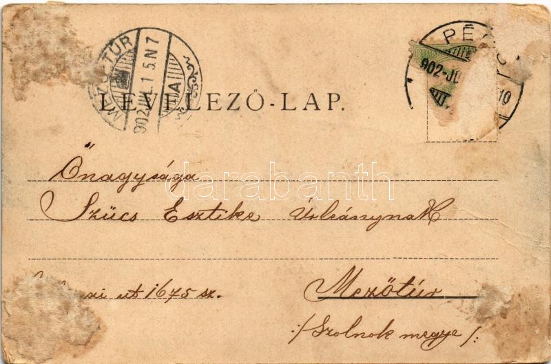 1902 Pécs, zárda. Blancz József kiadása (ragasztónyom / glue marks)