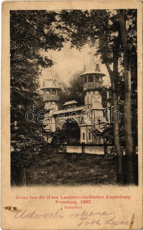 1902 Pozsony, Pressburg, Bratislava; Gruss von der II-ten Landwirtschaftlichen Ausstellung, Hauptthor. Bediene dich allein / II. Mezőgazdasági kiállítás, Főkapu / 2nd Agricultural exhibition, main entry gate (EK)