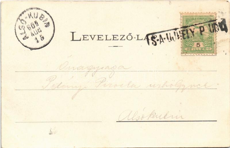 1902 Sátoraljaújhely, Rákóczi utca, gyógyszertár, Deutsch Ábrahám, Grosz Mihály üzlete. Lövy A. kiadása
