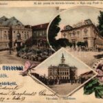1902 Újvidék, Novi Sad; színház, M. kir. posta és távirda hivatal, Városház / theatre, post and telegraph office, town hall. Art Nouveau, floral (Rb)