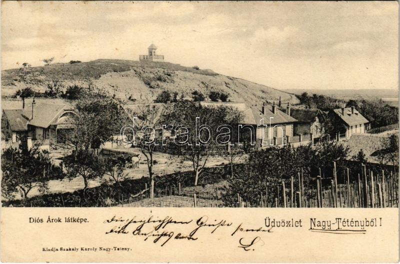 1903 Budapest XXII. Nagytétény, Nagy-Tétény; Diósárok, kilátó torony. Szakály Károly kiadása<a href="https://www.darabanth.com/hu/gyorsarveres/414/kategoriak~Kepeslapok/Magyarorszag~1500003/1903-Budapest-XXII-Nagyteteny-Nagy-Teteny-Diosarok-kilato-t