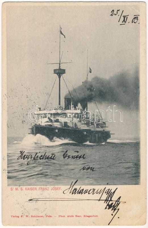 1903 SMS Kaiser Franz Joseph I, a K.u.K. haditengerészet Ferenc József-osztályú védett cirkálója / K.u.K. Kriegsmarine SM Kleiner Kreuzer Kaiser Franz Josef / Austro-Hungarian Navy I. Franz Joseph-class protected cruiser. Phot. Alois Beer (EK)<a hre