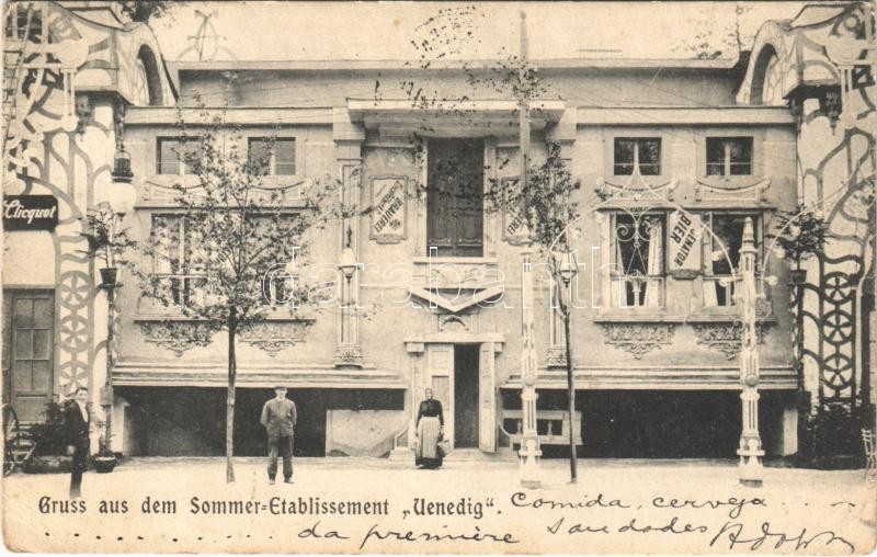 1903 Wien, Vienna, Bécs; Gruss aus dem Sommer Etablissement Venedig / summer restaurant (EK)<a href="https://www.darabanth.com/hu/nagyaukcio/38/kategoriak~Kepeslapok/Ausztria~15659/1903-Wien-Vienna-Becs-Gruss-aus-dem-Sommer-Etablissement-Venedig-sum