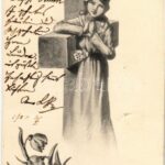 1904 Fröhliche Ostern! / Easter greeting card with girl and cross. Aurora S. 2051/3.