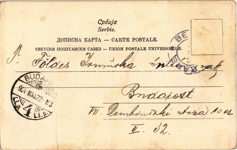 1904 I. Péter szerb király és családja. Szecessziós montázs Belgrád látképével / Peter I of Serbia and his family. Art Nouveau, floral montage with Belgrade (fa)<a href="https://www.darabanth.com/hu/nagyaukcio/40/kategoriak~Kepeslapok/Uralkodo-Polit