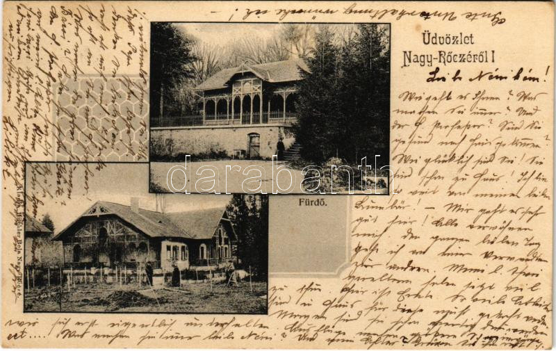 1904 Nagyrőce, Nagy-Rőcze, Gross-Rauschenbach, Velká Revúca; Nagyrőczei vasas gyógyfürdő. Büchler Béla kiadása / spa, bath<a href="https://www.darabanth.com/hu/gyorsarveres/440/kategoriak~Kepeslapok/Felvidek~2000006/1904-Nagyroce-Nagy-Rocze-Gross-Ra