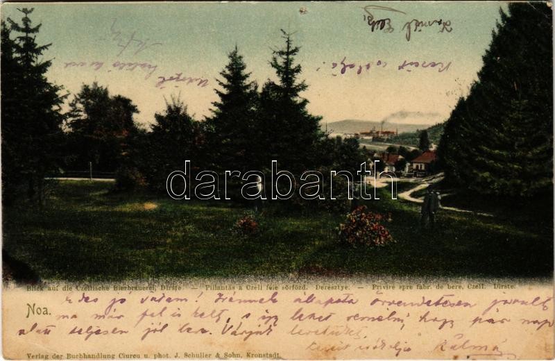 1905 Brassó, Kronstadt, Brasov; Noa. Blick auf die Czellische Bierbrauerei Dirste / Pillantás a Czell-féle sörfőzde felé (Derestye) / Privire spre fabr. de bere Czell / view with brewery (lyuk / pinhole)
