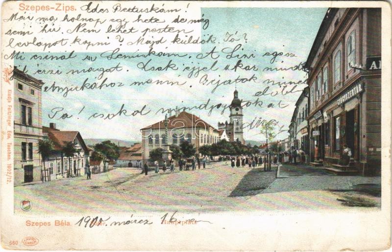 1905 Szepesbéla, Spisská Belá (Szepes, Zips); Fő tér, Gyógyszertár, üzletek. Feitzinger Ede 560. 1902/12. / Hauptplatz / main square, pharmacy, shops (Rb)