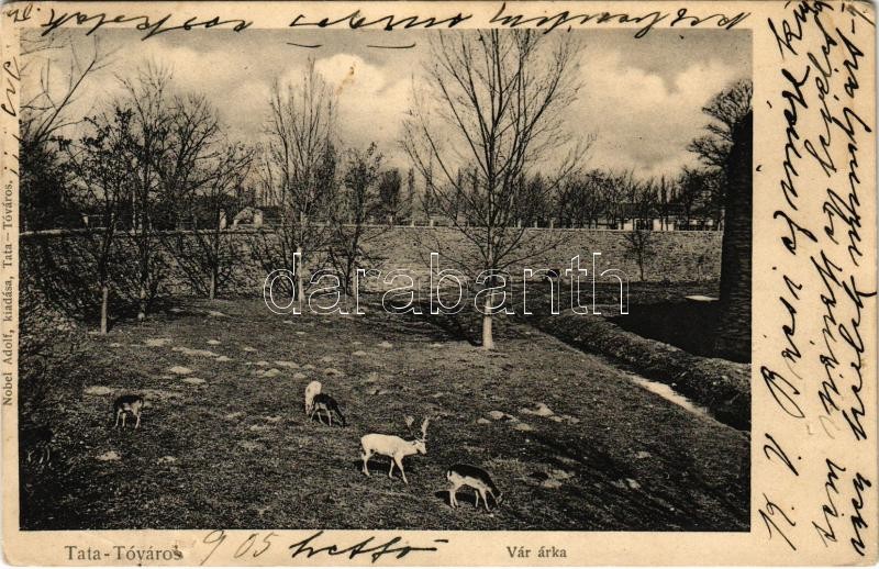 1905 Tata, Tata-Tóváros; Vár árka, várárok, szarvasokkal és őzekkel. Nobel Adolf kiadása (r)<a href="https://www.darabanth.com/hu/gyorsarveres/412/kategoriak~Kepeslapok/Magyarorszag~2000006/1905-Tata-Tata-Tovaros-Var-arka-vararok-szarvasokkal-es-oze