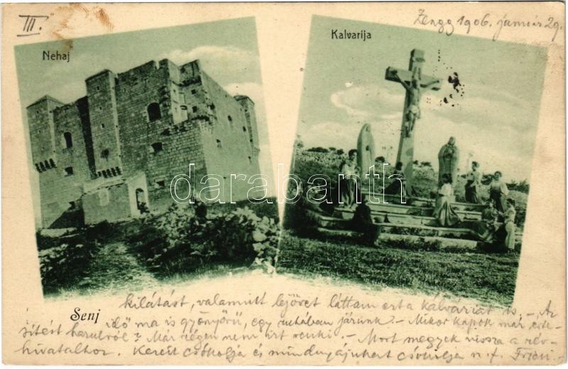 1906 Senj, Zengg; Nehaj, Kalvarija / Fortress and calvary<a href="https://www.darabanth.com/hu/gyorsarveres/415/kategoriak~Kepeslapok/Horvatorszag~1000009/1906-Senj-Zengg-Nehaj-Kalvarija-Fortress-and-calvary~II2601837/?utm_source=affiliate&utm_mediu