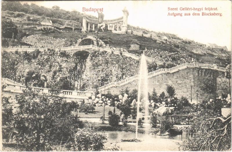 1907 Budapest I. Tabáni épületek a jobb felső sarokban, Szent Gellért hegyi feljárat