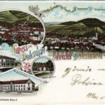 1907 Dobsina, Dobschau; Városháza, állami polgári fiúiskola, Népkert pavilon. Schwidernoch Károly / town hall, boy school, garden pavilion. Art Nouveau, floral, litho (EB)