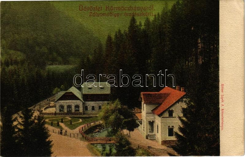 1907 Körmöcbánya, Kremnitz, Kremnica; Zólyomvölgy, Vadászkürt szálloda. Ritter Lipót J. kiadása / hotel