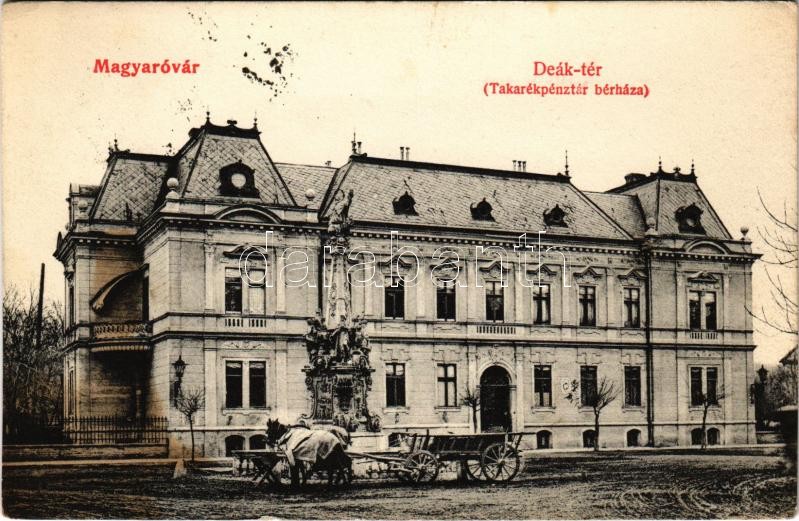 1907 Magyaróvár, Mosonmagyaróvár; Deák tér, Takarékpénztár bérháza, Nepomuki Szent János-emlékoszlop. G.M.P. 778. (fl)