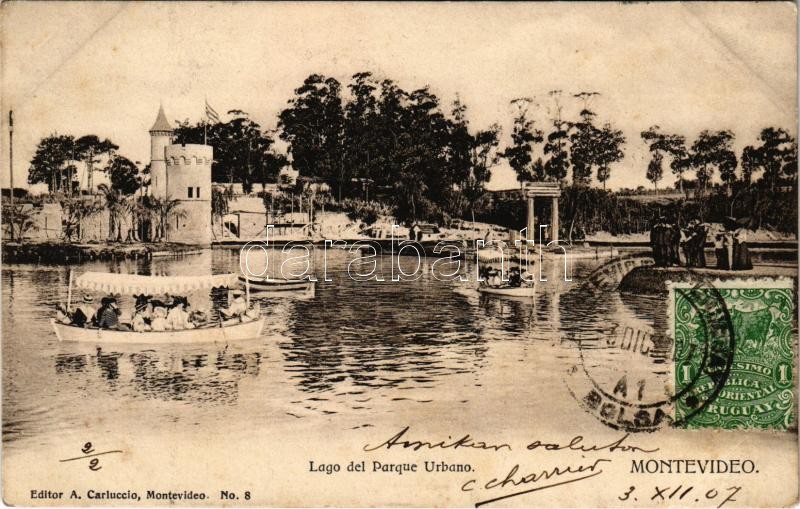 1907 Montevideo, Lago del Parque Urbano / park, lake, rowing boats. Editor A. Carluccio No. 8. (fl)