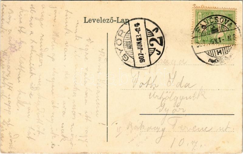 1907 Pancsova, Pancevo; Mária Terézia utca, Poppovits Nádor és Társa, Konstantinovics V. St. üzlete / street view, shops (EK)<a href="https://www.darabanth.com/hu/nagyaukcio/38/kategoriak~Kepeslapok/Vajdasag~15652/1907-Pancsova-Pancevo-Maria-Terezia