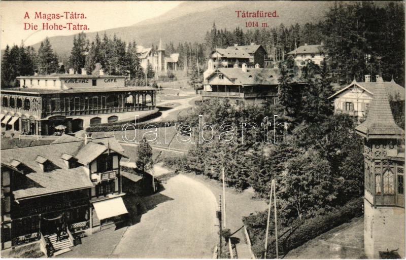 1907 Tátrafüred, Ótátrafüred, Bad Altschmecks, Stary Smokovec (Magas-Tátra, Vysoké Tatry); Kávéház, Maurer Adolf üzlete. Divald Károly 1590-1907. / cafe, shop<a href="https://www.darabanth.com/hu/nagyaukcio/38/kategoriak~Kepeslapok/Felvidek~15649/19