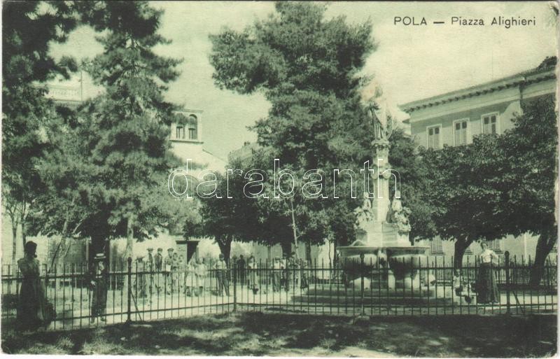 1908 Pola, Pula; Piazza Alighieri / square, statue / Dante szobor