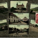 1909 Pecka, Kostel, Kostelní ulice, Námestí, Zriceniny hradu Pecka a Továrna, Hostinec Radnice / church, street, square, castle, factory, hotel and restaurant. TCV card (EK)<a href="https://www.darabanth.com/hu/nagyaukcio/38/kategoriak~Kepeslapok/Cs
