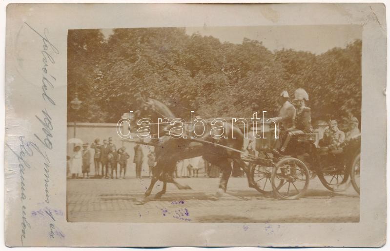 1909 Pozsony, Pressburg, Bratislava; Ferenc József lovashintón látogatásakor a Stefánia úton / Franz Joseph in horse chariot during his visit. photo (EK)<a href="https://www.darabanth.com/hu/nagyaukcio/38/kategoriak~Kepeslapok/Felvidek~15649/1909-Po