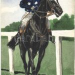 1910 A Gentleman Rider / Lovassport. Kézzel rajzolt művészlap / Equestrian sport, horse racer. Hand-painted art postcard s: Bujnák (non PC) (EK)
