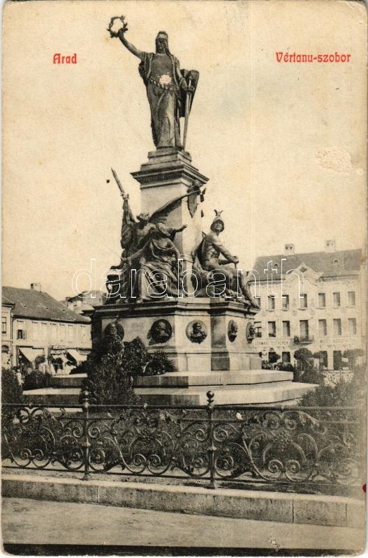 1910 Arad, Vértanú szobor, üzletek. Kerpel Izsó kiadása / martyrs’ monument, shops (Rb)<a href="https://www.darabanth.com/hu/gyorsarveres/415/kategoriak~Kepeslapok/Erdely~1000006/1910-Arad-Vertanu-szobor-uzletek-Kerpel-Izso-kiadasa-martyrs-monument-