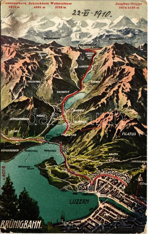 1910 Brünigbahn / Swiss narrow gauge railway line that links Lucerne with Interlaken, map (EK)<a href="https://www.darabanth.com/hu/gyorsarveres/439/kategoriak~Kepeslapok/Vonat~2000091/1910-Brunigbahn-Swiss-narrow-gauge-railway-line-that-links-Lucer