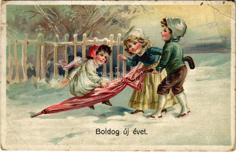1911 Boldog új évet, dombornyomott litho / New Year greeting, embossed litho (Rb)<a href="https://www.darabanth.com/hu/gyorsarveres/423/kategoriak~Kepeslapok/Udvozlolapok-Unnepek~1500093/1911-Boldog-uj-evet-dombornyomott-litho-New-Year-greeting-embo