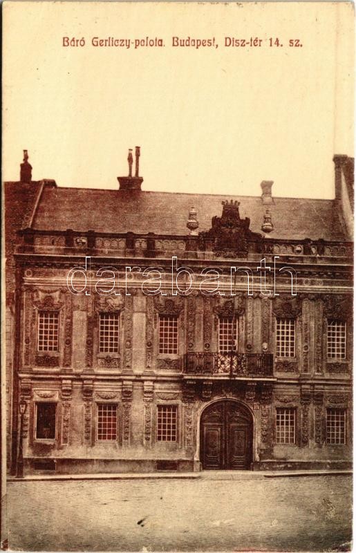1911 Budapest I. Báró Gerliczy palota. Dísz tér 14. sz. Kaukal Ferenc felvétele (EK)<a href="https://www.darabanth.com/hu/nagyaukcio/38/kategoriak~Kepeslapok/Magyarorszag~15644/1911-Budapest-I-Baro-Gerliczy-palota-Disz-ter-14-sz-Kaukal-Ferenc-felvet