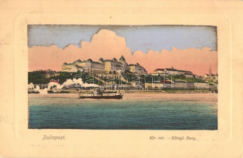 1911 Budapest I. Királyi vár, gőzhajó, kiadja Neumann No 14. (EK)<a href="https://www.darabanth.com/hu/gyorsarveres/411/kategoriak~Kepeslapok/Magyarorszag~1000005/1911-Budapest-I-Kiralyi-var-gozhajo-kiadja-Neumann-No-14-EK~II1818927/?utm_source=affi