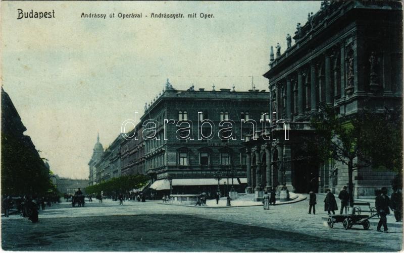 1911 Budapest VI. Andrássy út és Opera, The Mutual New York Életbiztosító Társaság, Szecesszió kávéház<a href="https://www.darabanth.com/hu/nagyaukcio/38/kategoriak~Kepeslapok/Magyarorszag~15644/1911-Budapest-VI-Andrassy-ut-es-Opera-The-Mutual-New-Y
