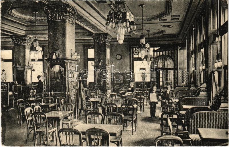 1912 Budapest VIII. József körút, Spolarits kávéház, belső pincérekkel (EK)