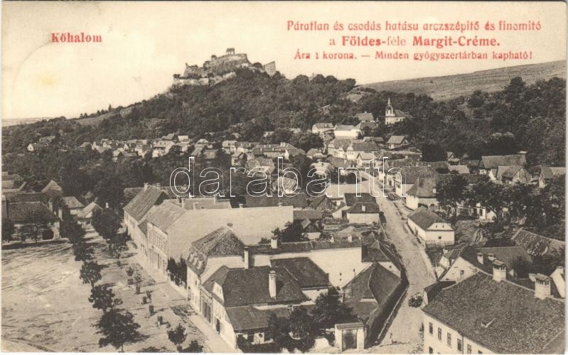 1912 Kőhalom, Reps, Rupea; vár. Földes-féle Margit-Créme reklám. Drotleff Józs. kiadása / castle, cream advertisement<a href="https://www.darabanth.com/hu/gyorsarveres/422/kategoriak~Kepeslapok/Erdely~1500005/1912-Kohalom-Reps-Rupea-var-Foldes-fele-