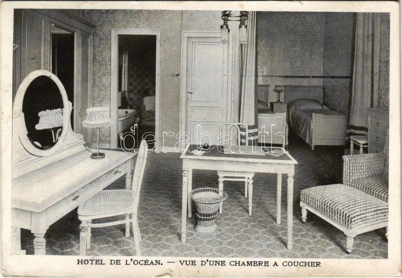 1912 Oostende, Ostende; Hotel de L’Océan, vue d’une chambre a coucher / hotel, room interior (tear)<a href="https://www.darabanth.com/hu/gyorsarveres/415/kategoriak~Kepeslapok/Belgium~1000019/1912-Oostende-Ostende-Hotel-de-LOcean-vue-dune-chambre-a-