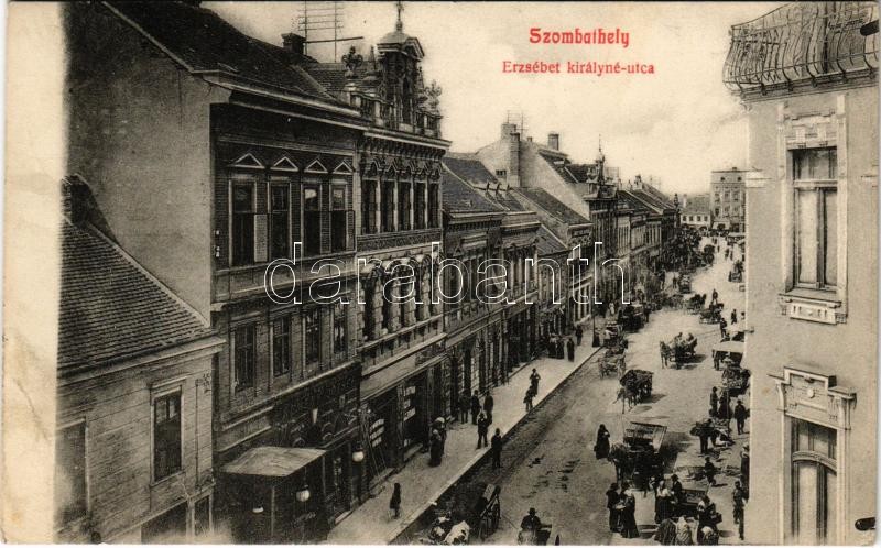 1912 Szombathely, Erzsébet királyné utca, Kemény József üzlete a Jocker Clubhoz, piac, Babics István Kígyó gyógyszertára. Granitz Vilmos kiadása<a href="https://www.darabanth.com/hu/nagyaukcio/38/kategoriak~Kepeslapok/Magyarorszag~15644/1912-Szombat