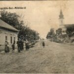 1913 Hegyközszentmiklós, Sannicolau de Munte (Bihar); utca, templom / street, church (EK)